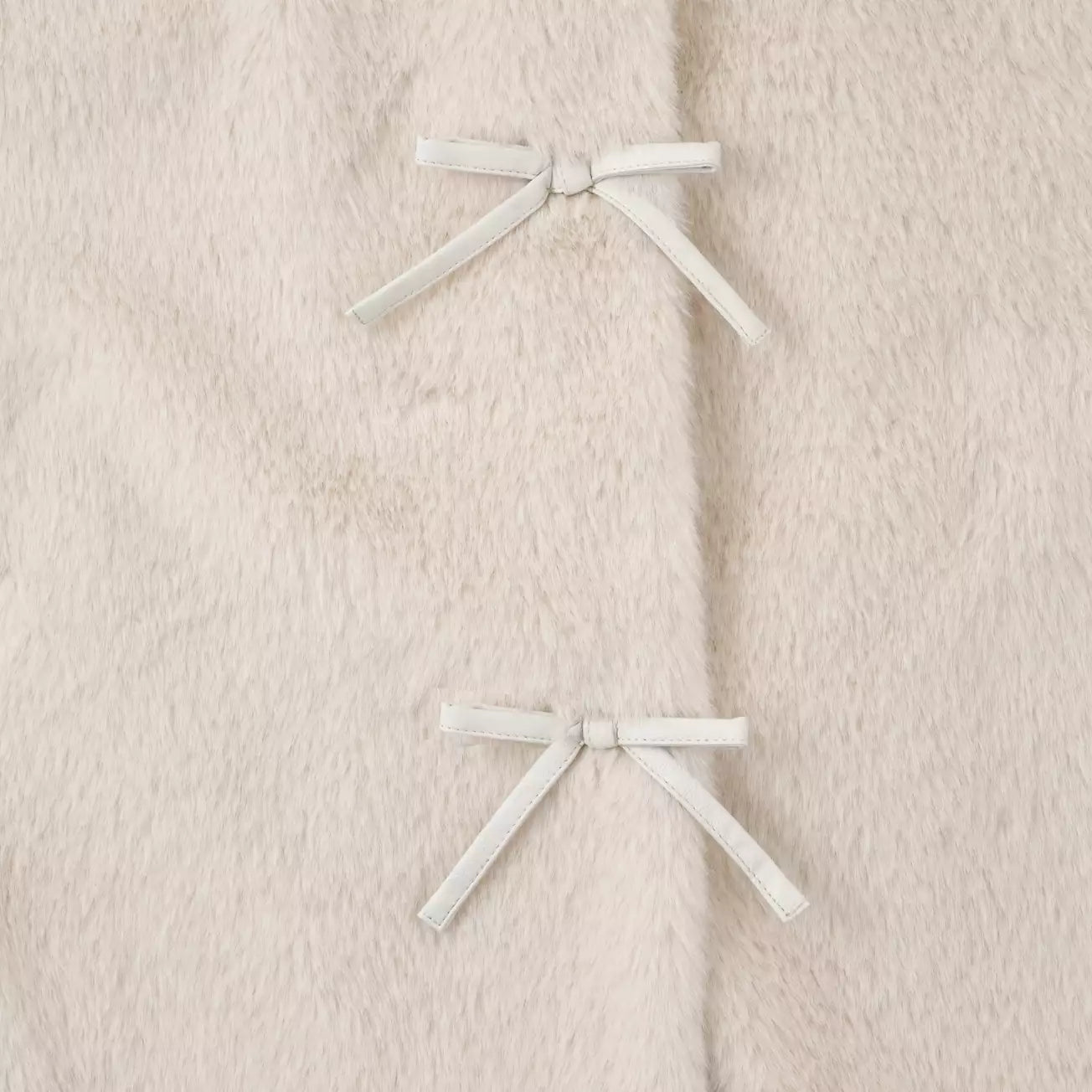 "The Aristocats" celebrates its 55th anniversary. To celebrate, we're introducing a faux fur jacket with a Marie brooch. Featuring the cute and expressive kitten Marie, this jacket has a slightly retro and classic feel. Crafted with luxuriously soft faux fur, its long, dense pile creates a luxurious feel with subtle gradations of color. The ribbon decoration on the front and the all-over vintage-inspired character art pattern on the lining add a touch of cuteness. The Marie brooch adds a touch of charm.