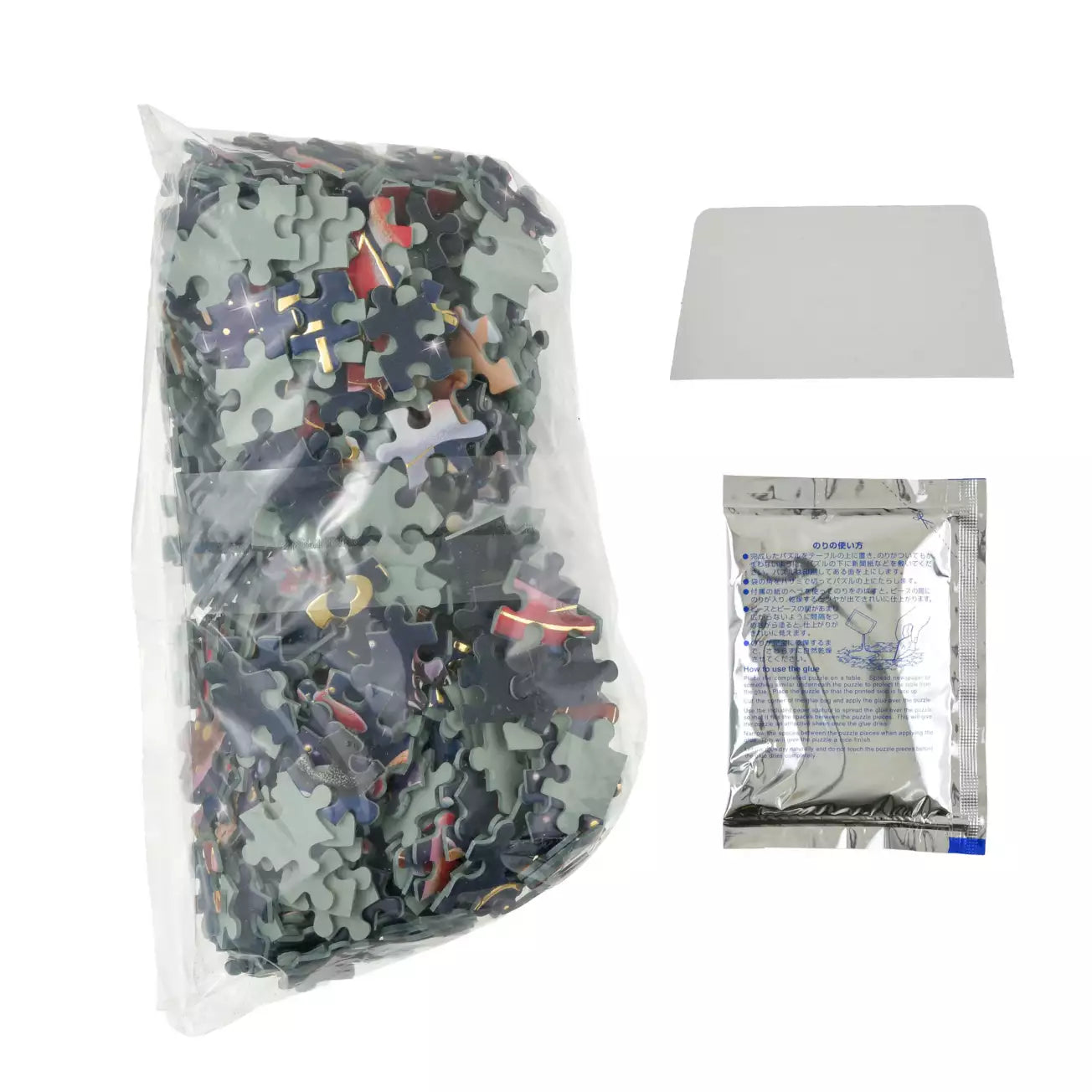 Celebrating the 85th anniversary of the animated feature film "Fantasia," this 500-piece jigsaw puzzle is here! Assemble the puzzle to reveal the fantastical artwork depicted on the box flap. Featuring Mickey Mouse dressed as the Sorcerer's Apprentice, a broomstick carrying a bucket, a centaur, an adorable Pegasus, and hippopotamus ballet dancers Hyacinth Hippo and Mila Yupanova dancing to "The Dance of Time." Sparkling details like the anniversary logo add a special touch, enhancing the artwork even more. The Western-style box features a lovely gold-lettered spine. Enjoy displaying it on a bookshelf or other interior décor.