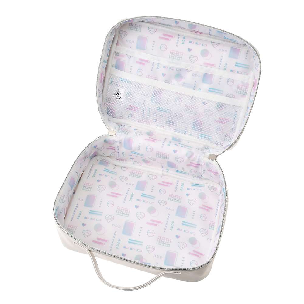 This large-capacity pouch features a handle and features a design of Baymax, the care robot. This sleek pouch features a glossy, smooth fabric with an embossed logo and a doctor-style Baymax holding a candy cane. The Single-color design creates a clean, comfortable look. The interior features a soft, gradient-colored all-over pattern. The spacious storage space with three pockets allows you to organize and store plenty of small items. The pouch's sturdy corners make it easy to stand upright for ultimate convenience. The design features Baymax wearing a stethoscope and other accessories, making it a great choice for storing medicine at home. Have a great spring with Baymax this year!