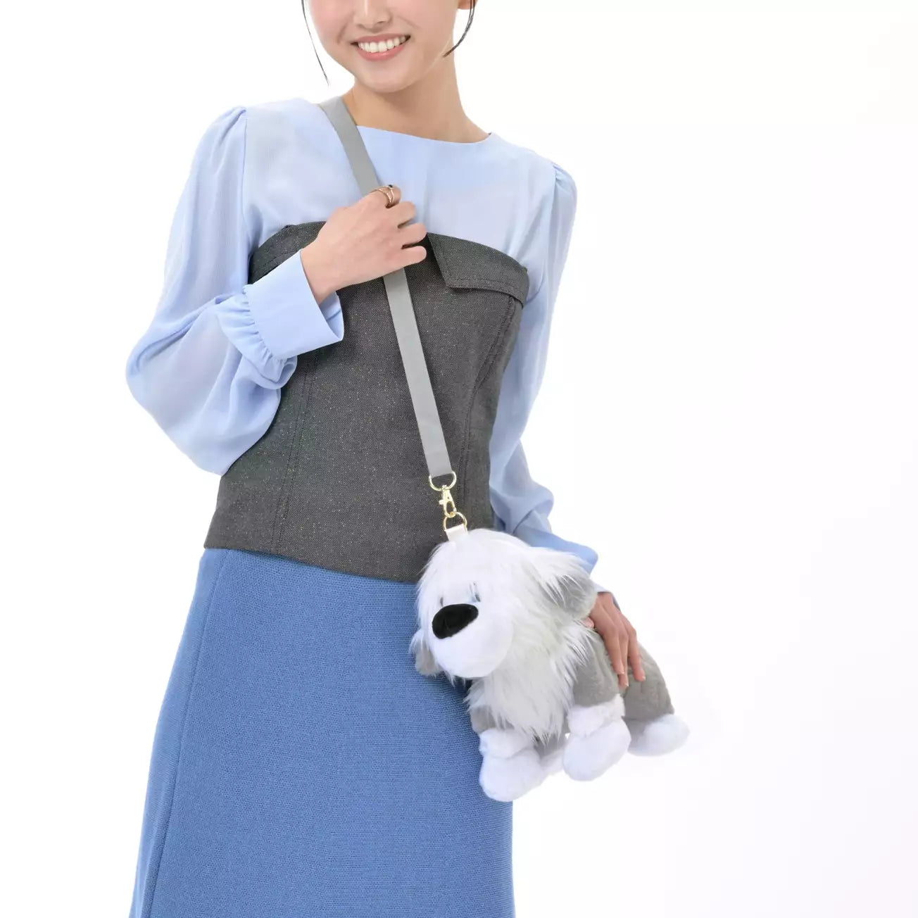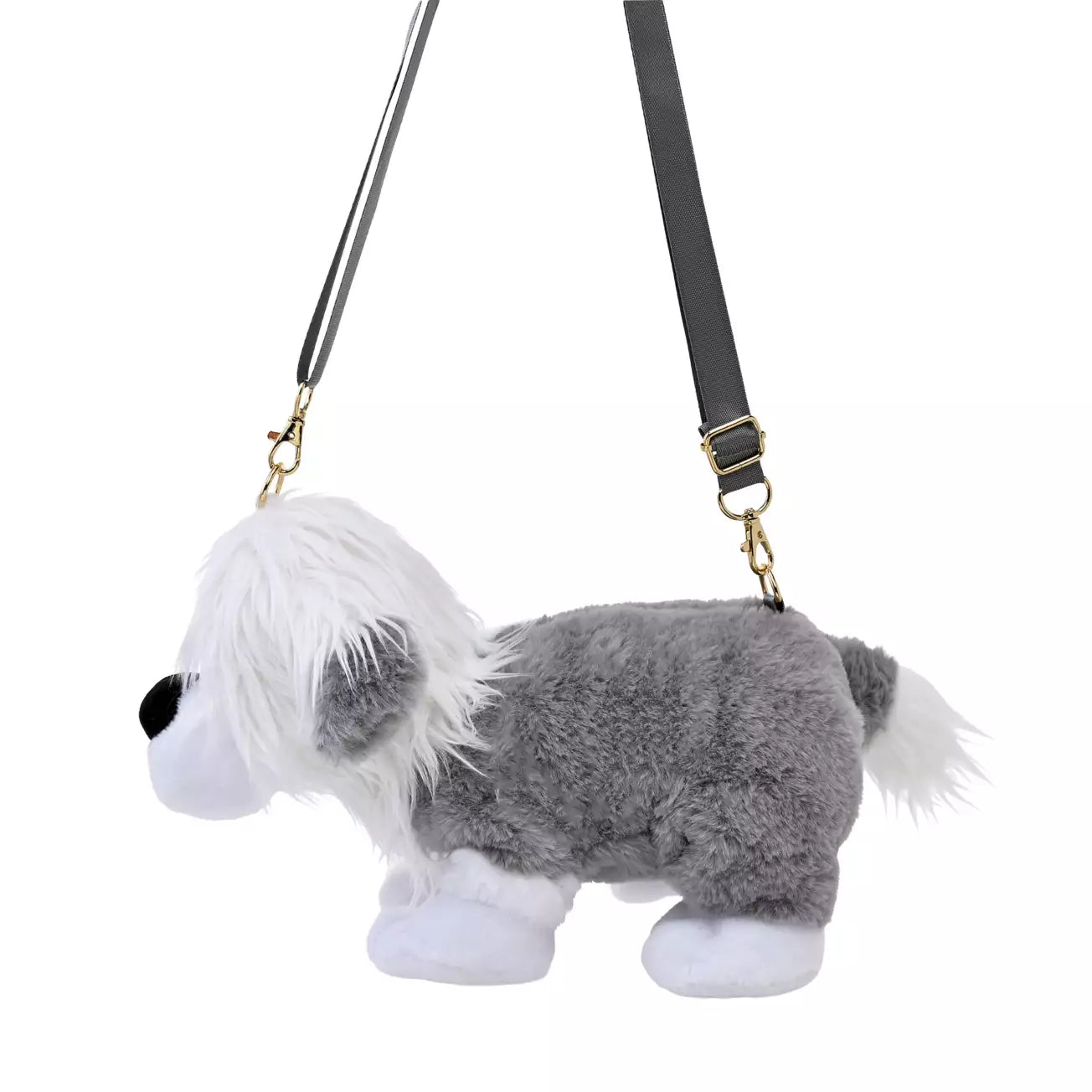 of soft, fluffy, and brushed material, it feels amazing to the touch. Carry the shoulder strap over your shoulder and enjoy the feeling of taking Max for a walk. The opening on Max's back allows you to store small items. This eye-catching pouch is a great accent piece for any outfit, making it perfect for fun outings like theme parks! Once you're back, detach the included strap and display Max in a sitting pose for a cute look.