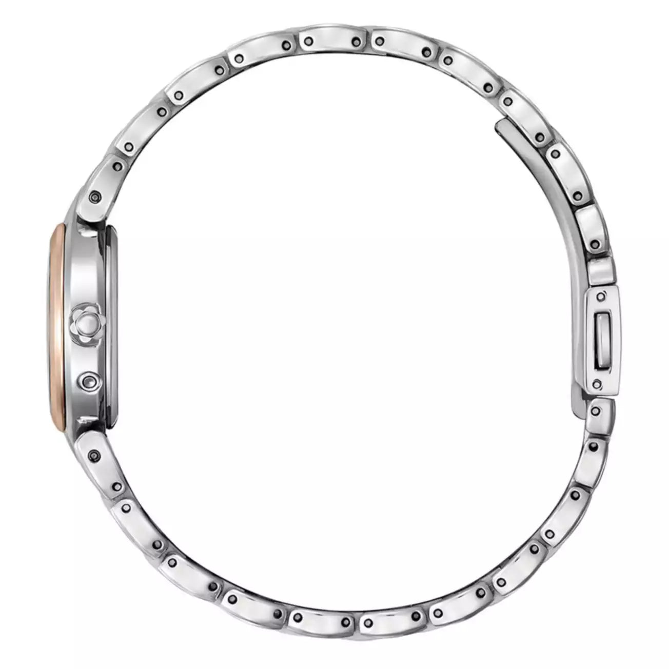 The flower-motif band design is based on a popular model and expresses the world of Winnie the Pooh. This special watch is beautiful, adorable, and practical. The dial is made of mother-of-pearl. At the 6 o'clock position, Winnie the Pooh is printed, dozing in a forest filled with dandelion fluff. The indexes feature cute Arabic numerals that match the world of Winnie the Pooh. The luminous hands make it easy to read the time even in dark places. The case back is engraved with silhouettes of Winnie the Pooh and Piglet blowing fluff. The fluttering fluff matches the design of the dial.