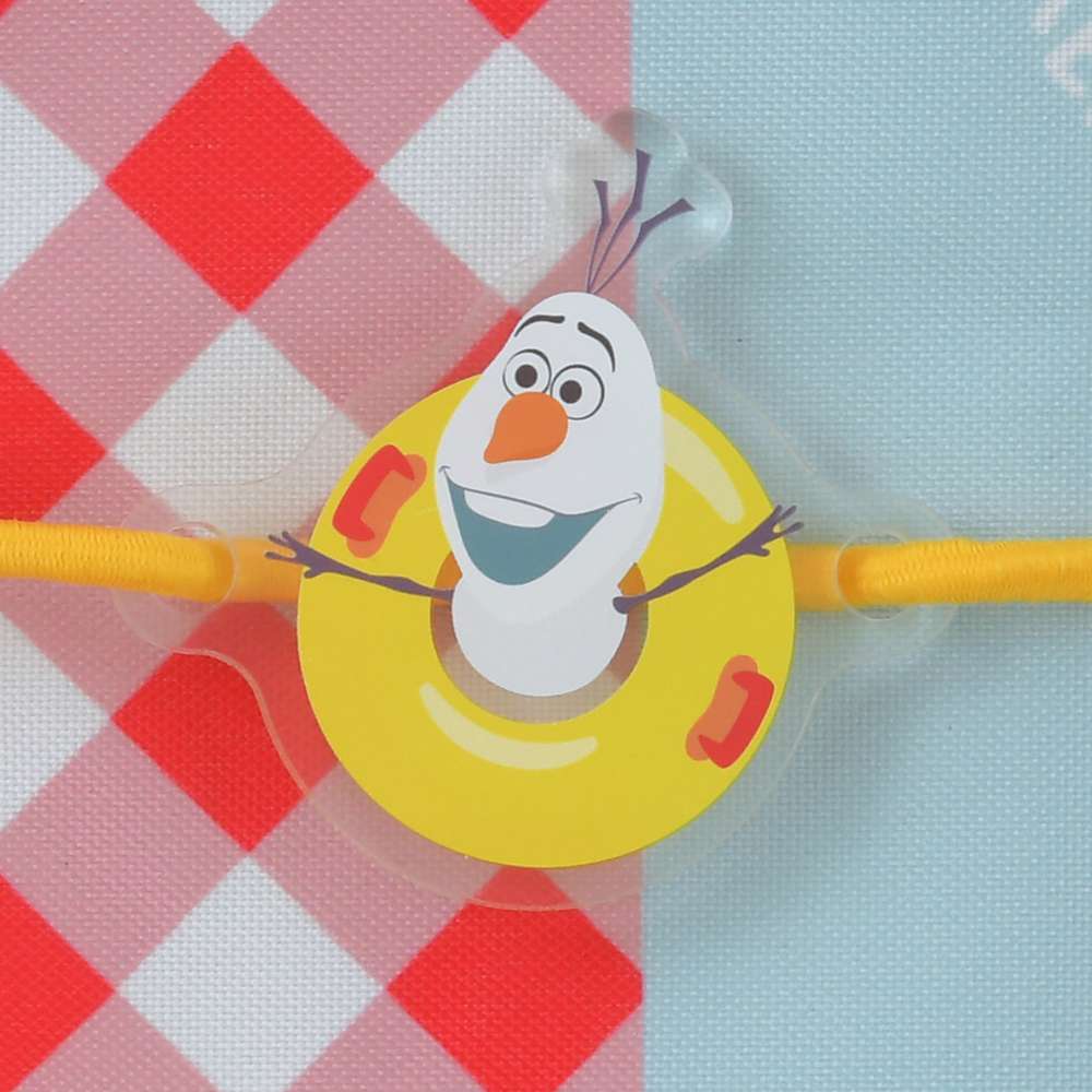 The gingham check pattern on both ends is inspired by the pattern on the picnic blanket Olaf uses in the film. It's a touch of intriguing detail.