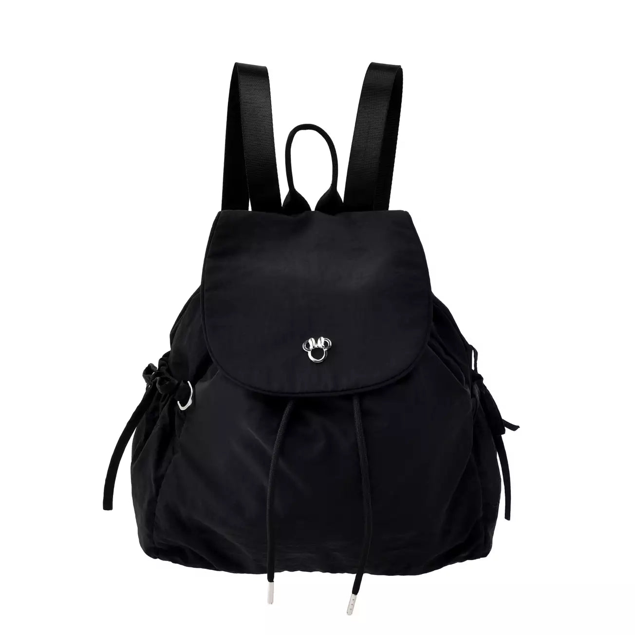 This Minnie-design backpack features a character accent. Crafted from soft fabric with a subtle sheen, the backpack features character details attached to the flap for a touch of glamour. The ribbon on the side pocket not only adds a cute touch, but tightening it also helps prevent items from falling out. A D-ring is located next to one of the side pockets, so you can decorate it with your favorite charms. This casual bag is perfect for a variety of occasions!