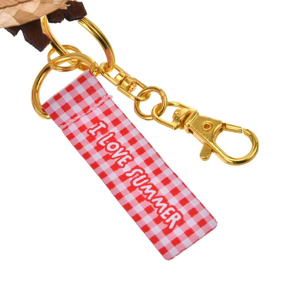 Olaf, the cheerful snowman longing for summer, is here with this plush keychain from "Frozen." It's based on the scene in the film where he dances and sings "Summertime." His adorable straw hat and cane are faithfully recreated. The pure white body sparkles as if bathed in the summer sun! The red gingham ribbon tag features the "I LOVE SUMMER" logo. The gingham pattern is inspired by the picnic blanket Olaf uses in the film. A touch of intrigue! Decorate your belongings with Olaf and enjoy a wonderful summer!
