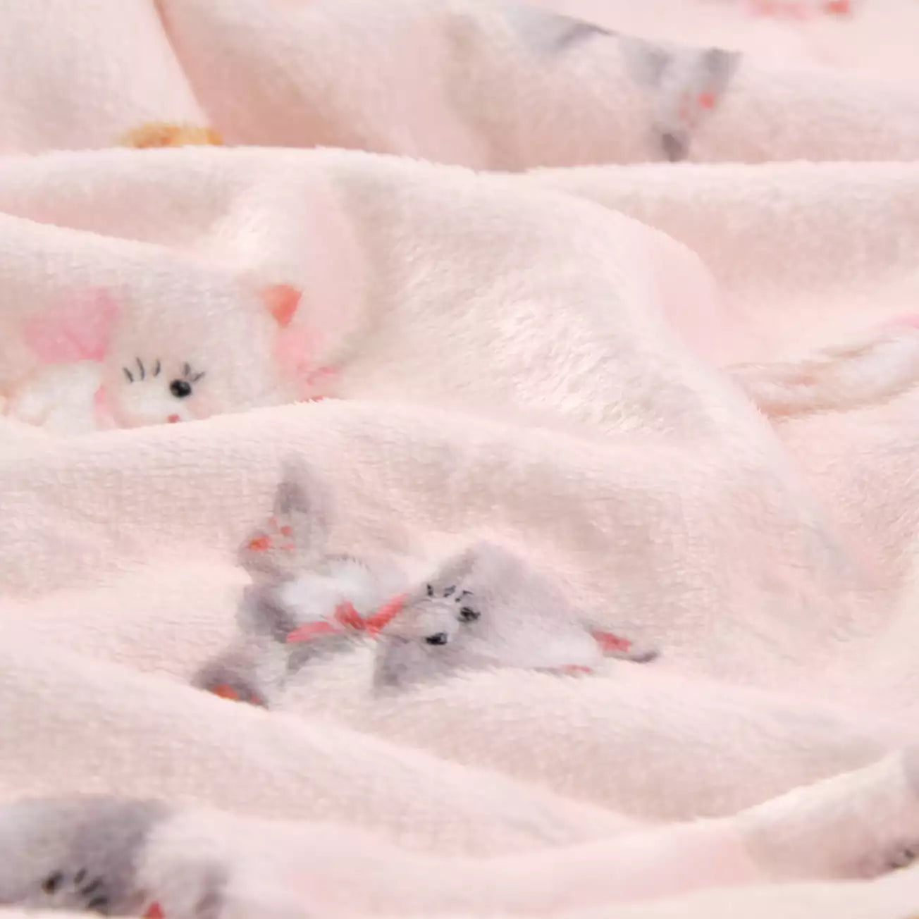 transformed into adorable plush-style art. The pale pink fabric features Marie, Berlioz, and Toulouse. Their adorable, floppy poses convey the softness of plush toys.