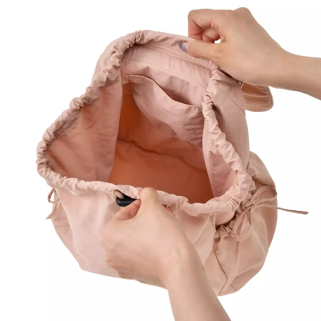This backpack features a Marie design from "The Aristocats." Crafted from soft fabric with a subtle sheen, the character detailing on the flap adds a touch of glamour. The ribbon on the side pocket not only adds a cute touch, but tightening it also helps prevent items from falling out. A D-ring is located next to one of the side pockets, so you can decorate it with your favorite charms. This casual bag is perfect for a variety of occasions!