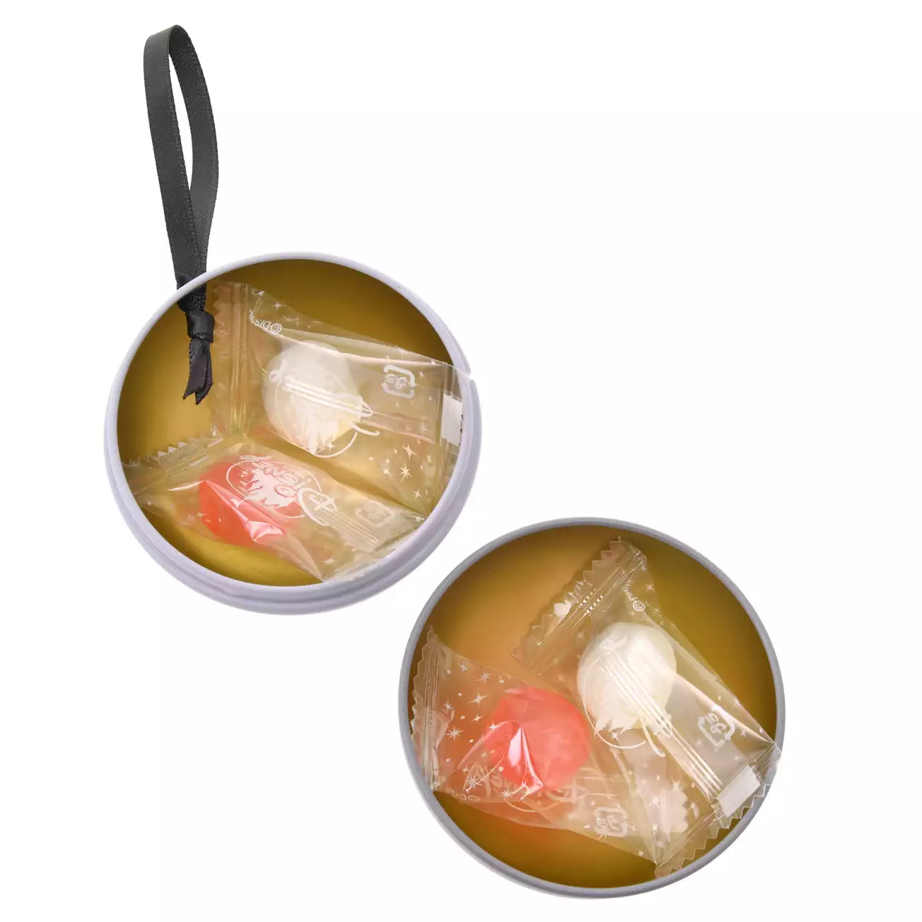 Introducing candy ball ornament-style tin cases featuring Jack Skellington and Zero. The double-sided tin case features a Sandy Claws-style Jack Skellington and Zero the ghost dog holding a candy stick. The round, spherical case looks just like an ornament. It comes with a string, so it's perfect for decorating a tree! Open the case to reveal two yogurt-flavored and two strawberry-flavored candies, for a total of four. These delicious treats from Tim Burton's The Nightmare Before Christmas will add a unique touch to your holiday season. They also make a great Christmas gift!