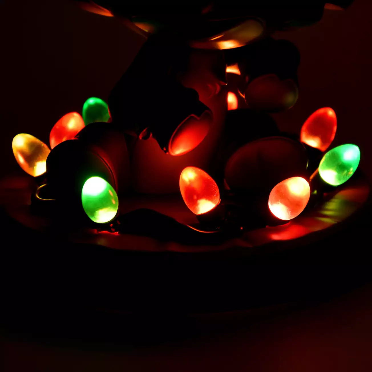 Stitch is super cute in his reindeer outfit, complete with a antler headband and hoof-like gloves. Flip the switch to light up! Colorful light bulbs flash randomly, creating a festive atmosphere. Decorate your room with this figure to instantly create a festive holiday atmosphere. Enjoy a wonderful time with Stitch! It runs on AAA batteries or can be powered via USB. Power it via a pre-installed USB port.