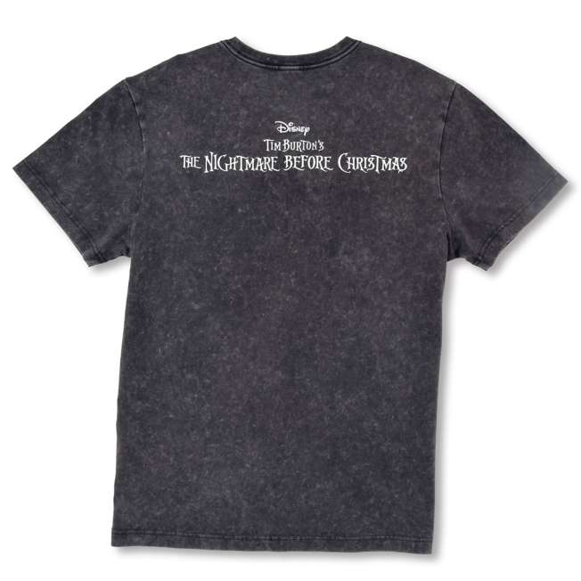 Introducing the Jack Skellington short-sleeve T-shirt from "Tim Burton's The Nightmare Before Christmas." The large print on the front makes a big impact! Jack Skellington's pale face is full of character. The design matches the vintage-like texture of the T-shirt with spooky art. The film's logo is printed on the back, making it perfect from both the front and back.