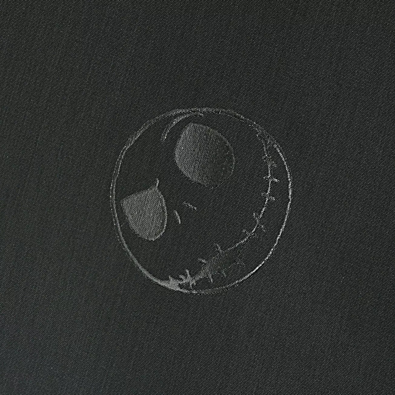 The striped pattern, inspired by Jack Skellington's costume, and the all-over print of the character's face are key features. The character's face features a glossy print that blends in with the fabric for a stylish, subtle effect. The pattern on the character's face is a must-see.