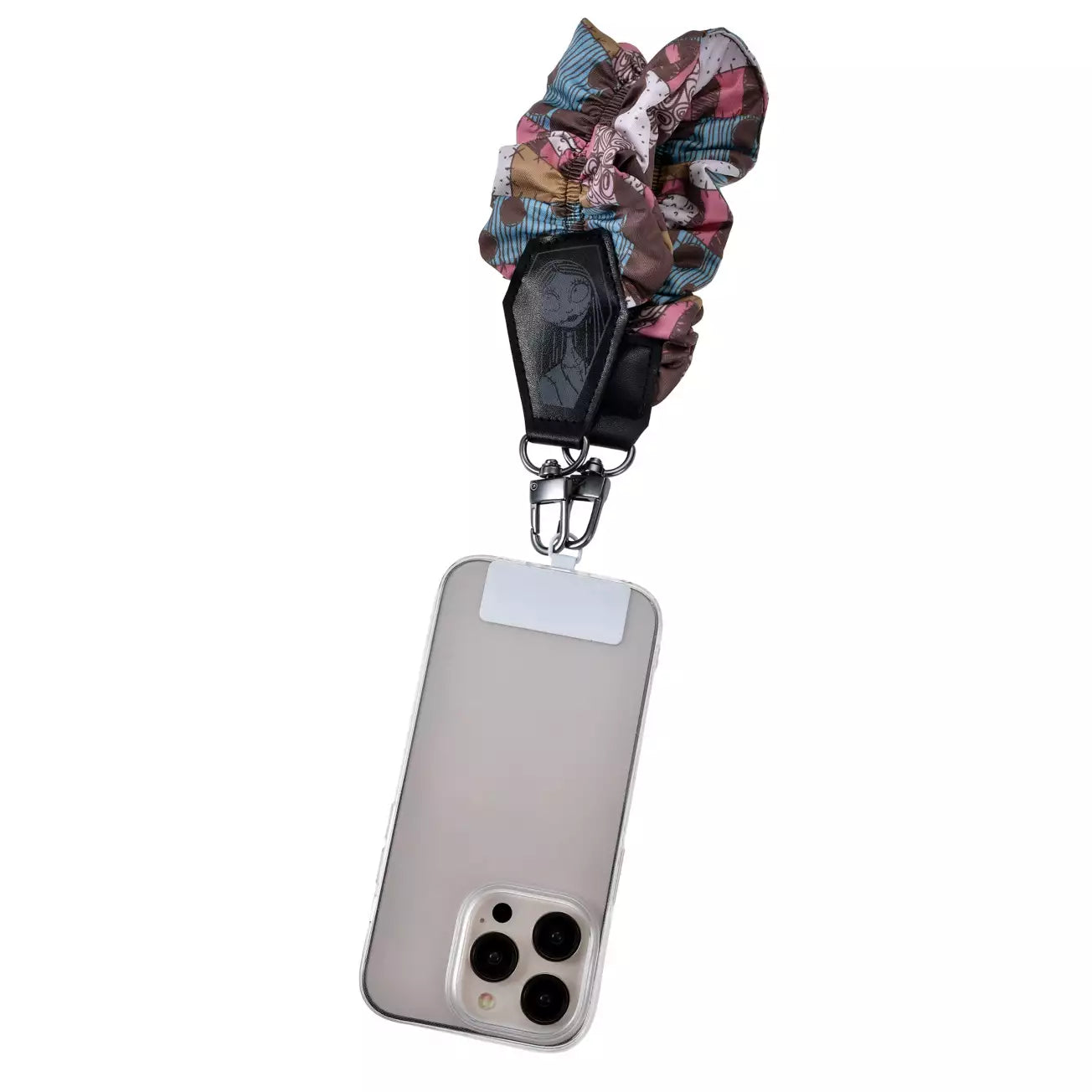 features the pattern of the costume worn by the patchwork doll Sally in a chic, nuanced color scheme. The leather-like material at the end of the strap adds a touch of Sally's image, and the voluminous design makes it a perfect accent piece for any outfit.