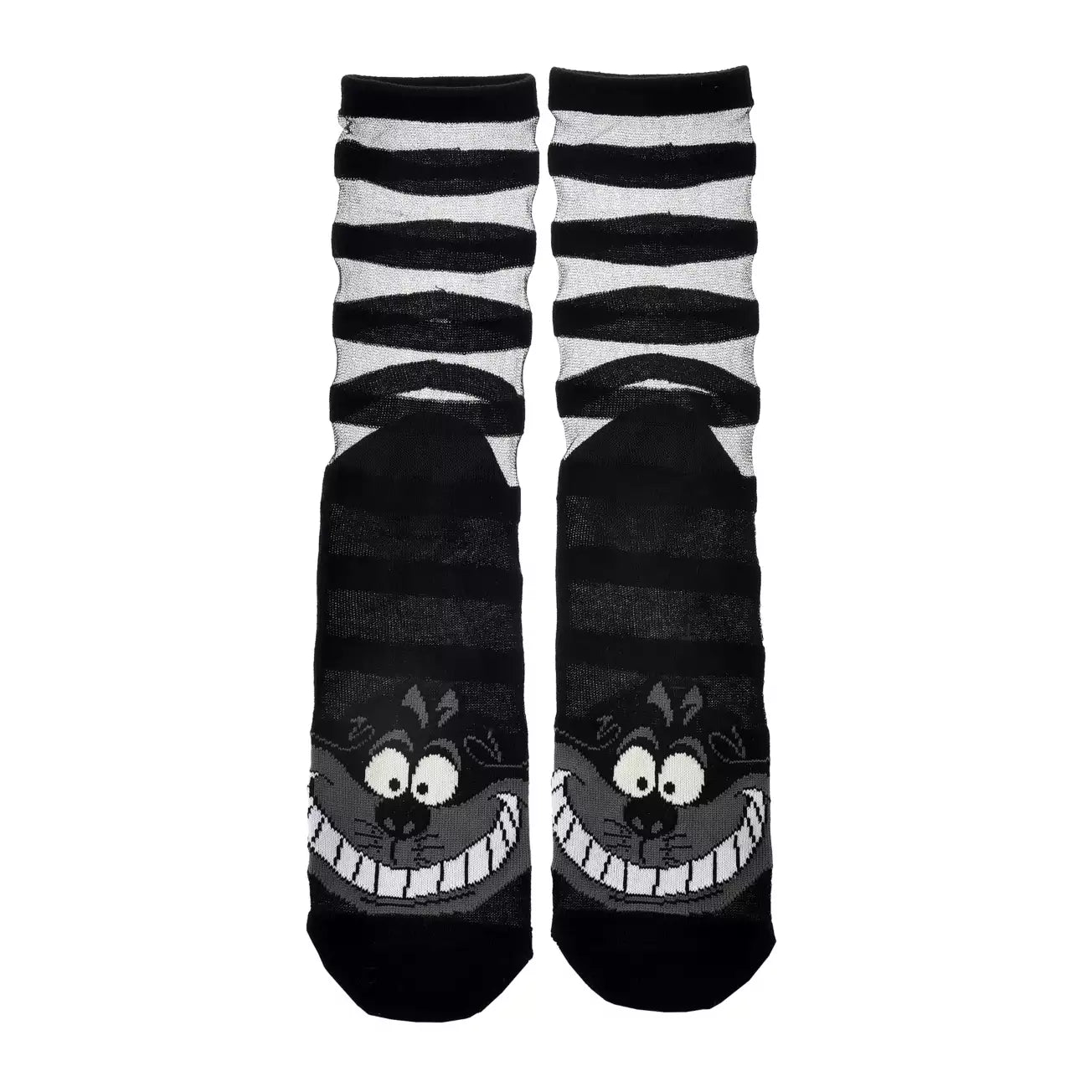 These see-through socks feature the Cheshire Cat, the mischievous, mysterious feline from "Alice in Wonderland." This mischievous character, who repeatedly appears out of nowhere and then disappears with a grin, has been turned into a fashion accessory.