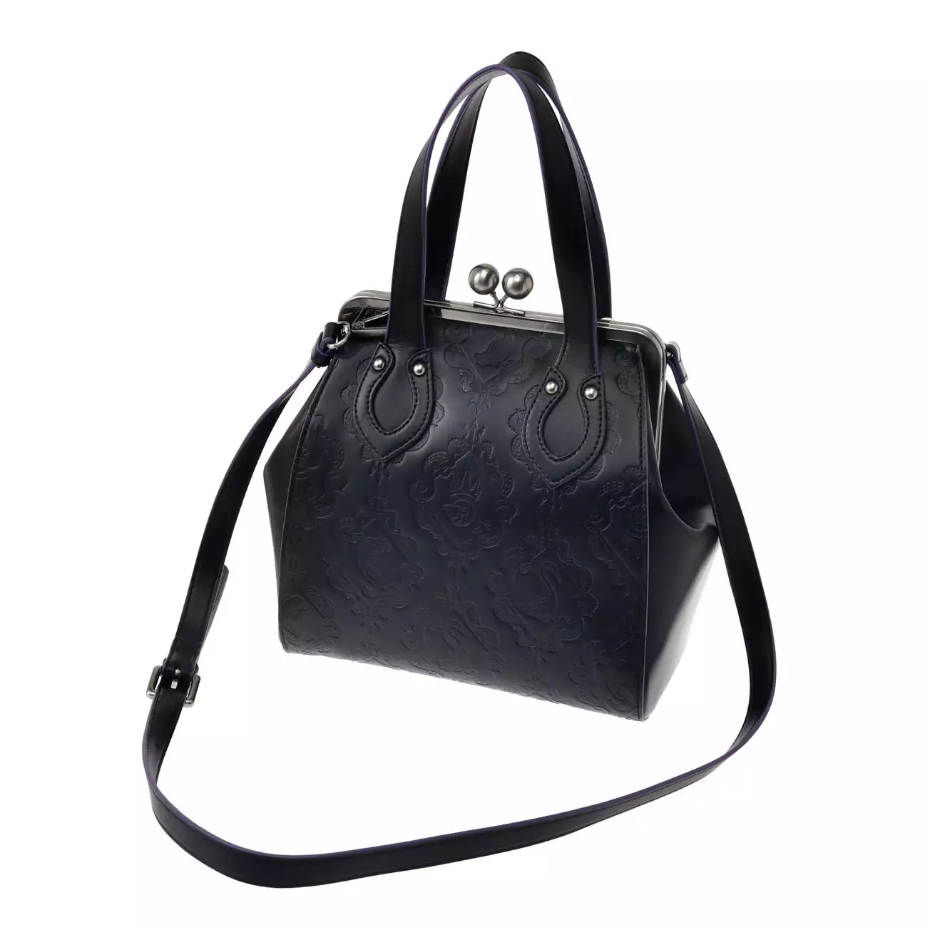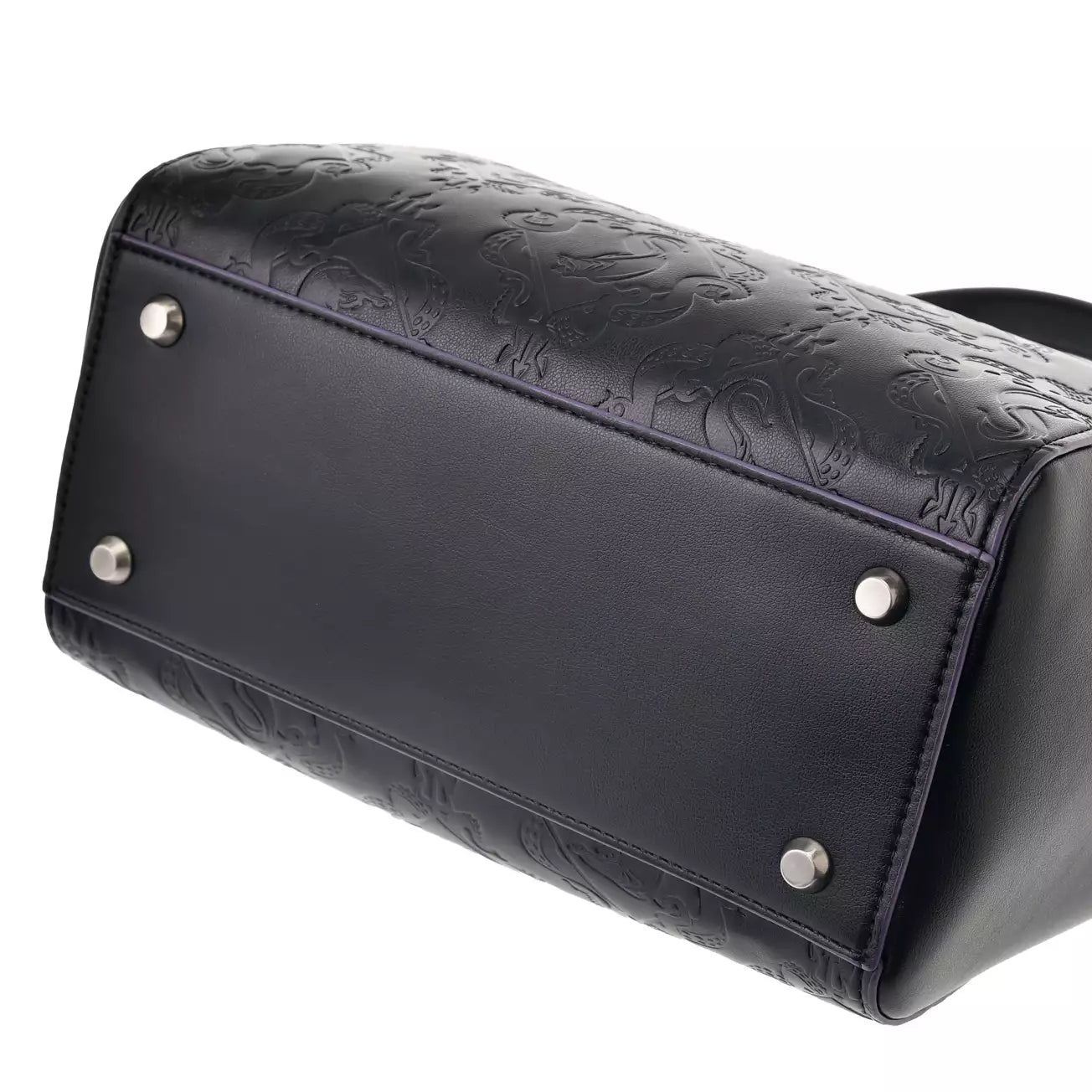 This popular clasp bag features Ursula's iconic motif and her moray eel minion embossed on the front. The subtle sheen creates a luxurious feel. The character's signature purple accents create a charming, alluring piece.The soft fabric also makes it easy to handle.