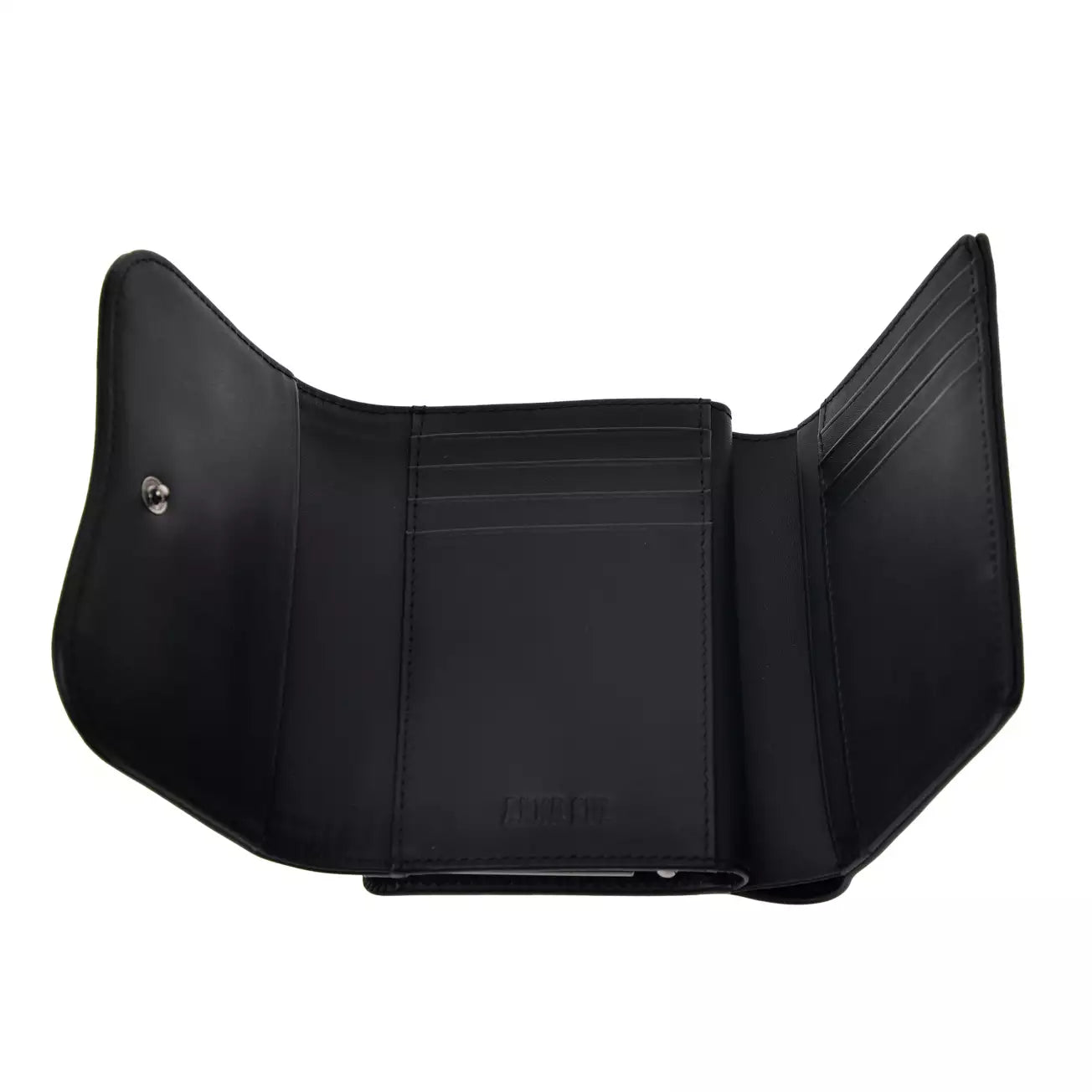 The coin purse and bill compartment feature beautiful fabric with the brand logo.
