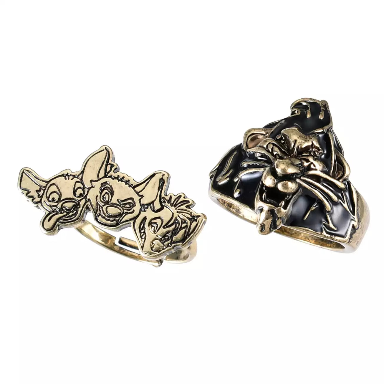 Introducing a ring set featuring the Disney villain Scar and the hyena characters Shenzi, Banzai, and Ed.