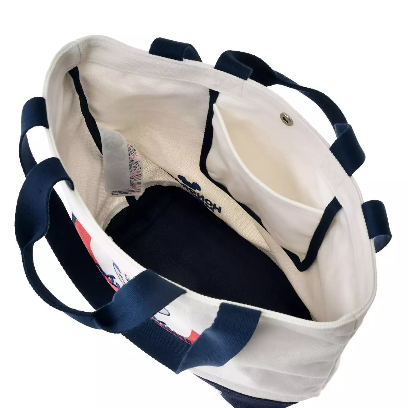 This tote bag celebrates the 70th anniversary of the American television show, "The Mickey Mouse Club." It features a large "Mickey Mouse Club" logo.