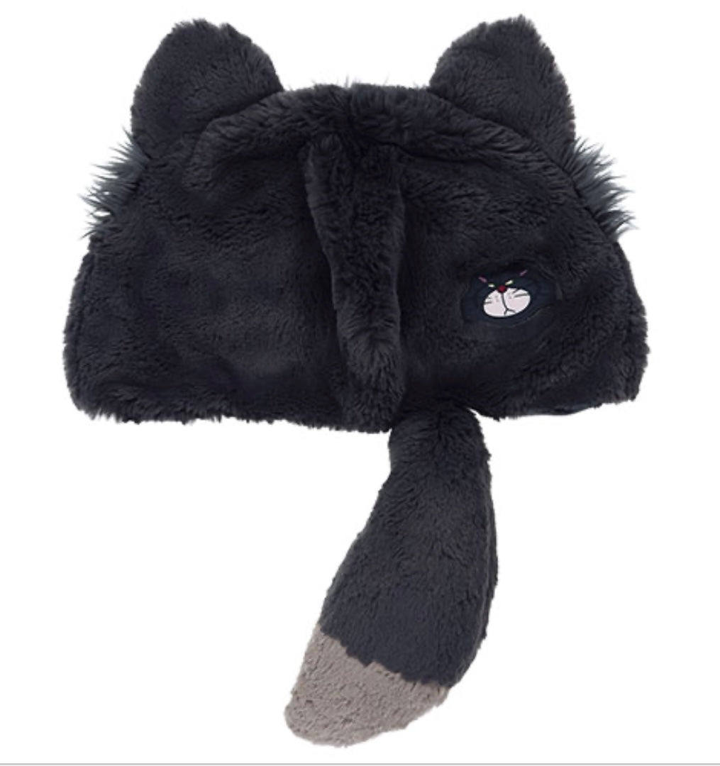 This fun hat is inspired by Lucifer, the cat from the Disney film "Cinderella." The ears and tail are the highlights! There's also a patch of Lucifer's face on the back.