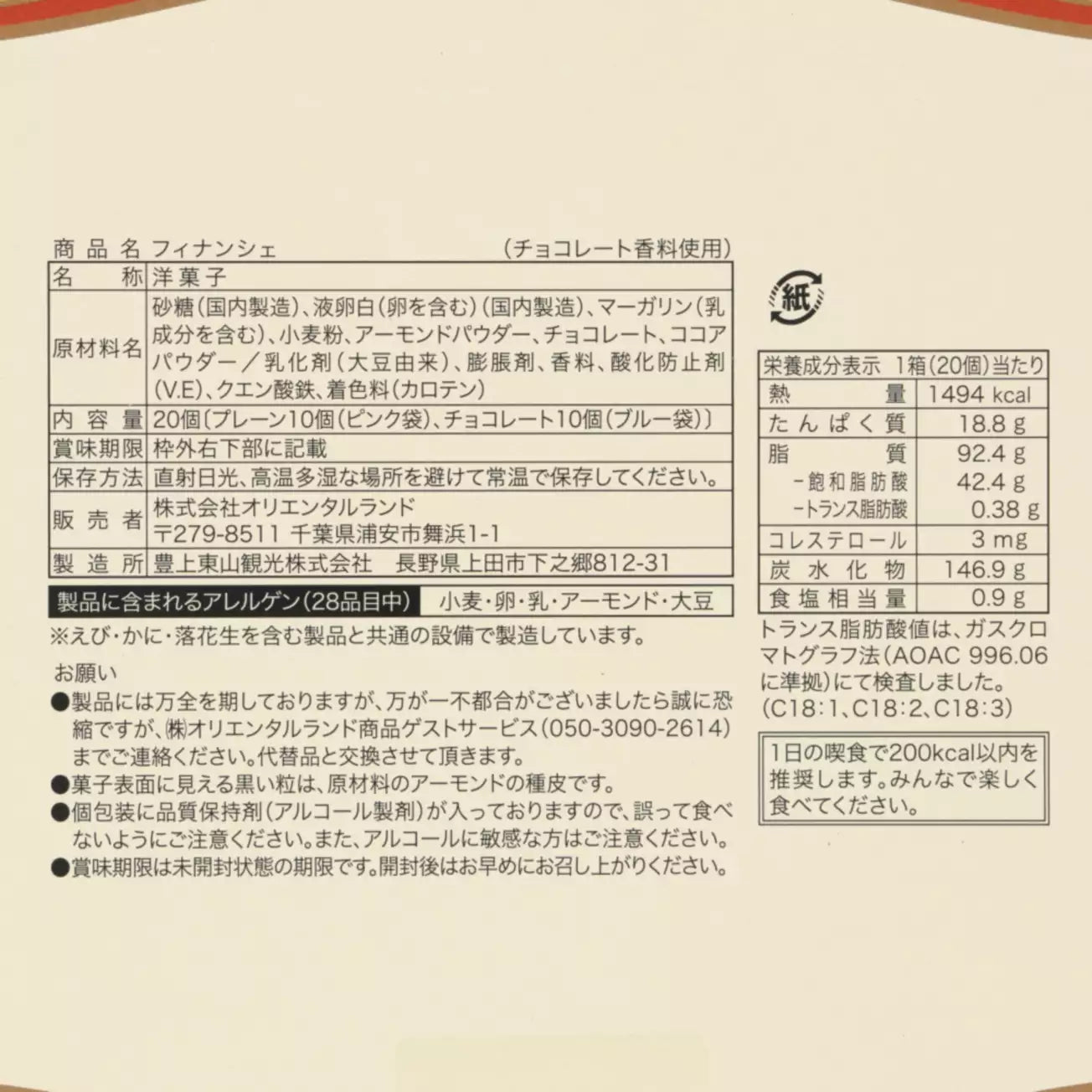 Tokyo Disney Resort - Mickey Mouse & Friends - Financier - Paper Box